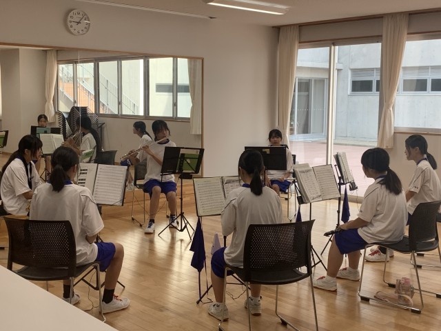 吹奏楽部は昨日から1.2年生の活動です。2年生が中心になりパート練習をしています。