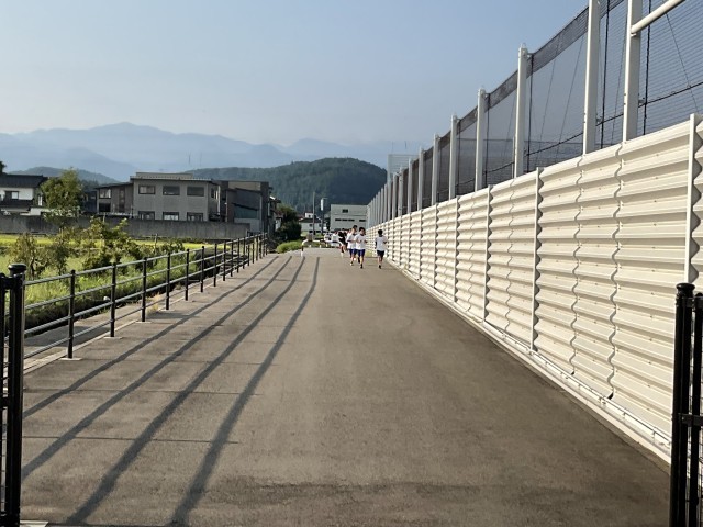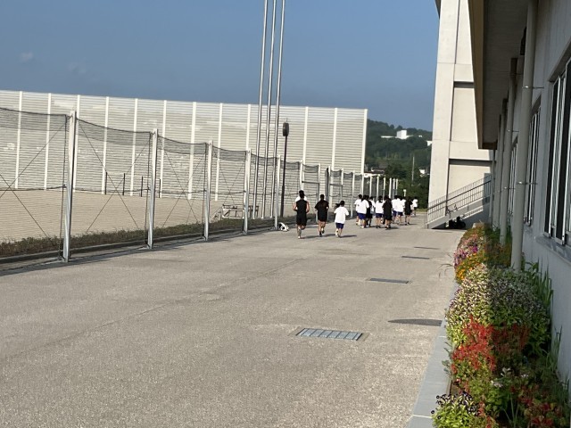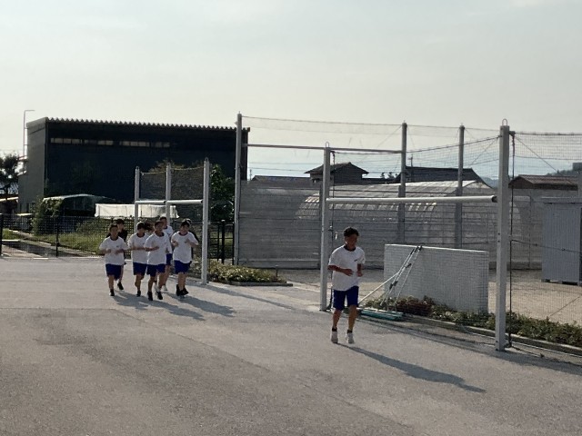 今朝は、いつもよりやや気温が高めの朝です。校舎周りを一生懸命走っています。