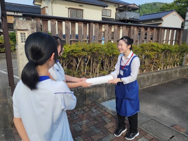 3年生「八尾をプロデュース」の活動です。9月1日〜3日に開かれる「おわら風の盆」で、私たち3年生はこれまで準備してきたことを形にします。今日は、物販でお世話になる店舗の方に、挨拶をしてきました。多くの方が我が街八尾に来てくださることをお待ちしております。また、私たちががんばる姿もぜひ見ていってください。
