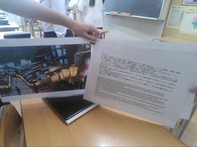 案内用のフリップも自分達で作りました!当日は八尾駅、聞名寺、曳山会館で案内をします!外国の方にも伝わるように英語も用意されているそうです!!お客さんにたくさん八尾町を知ってもらいたいですね!!
