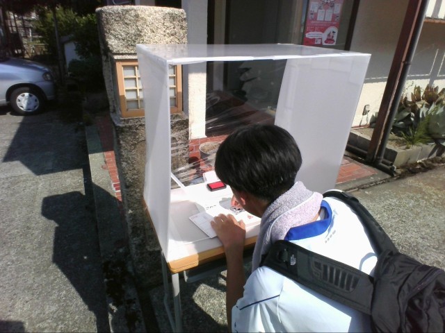 八尾プロデュースの活動中に見つけた生徒がスタンプを押していました。