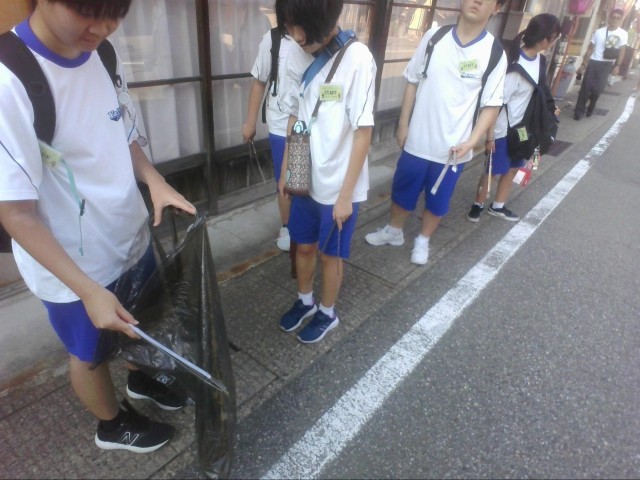 ボランティア部のメンバーが、ゴミをたくさん拾っていました。