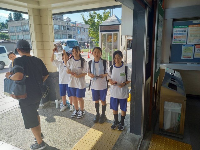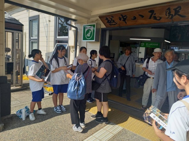 2日目の活動がスタートしています。八尾駅では、電車が到着するたびにたくさんの観光客が降車します。今日も、たくさんの観光客の方をおもてなしの心で迎えます。