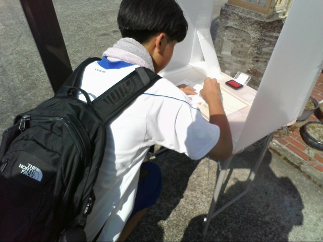 旧町の各町では、歌碑の横にスタンプ台が設置されています。