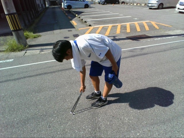 これは八尾中学生が東町でゴミ拾いをしている様子です。