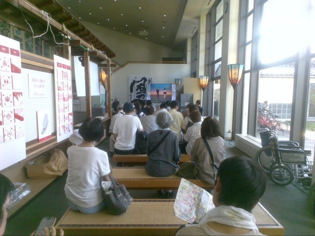 これは曳山会館の様子です!観光客の方々が映像を見ながら、おわらを踊ったりして楽しんでいます!
