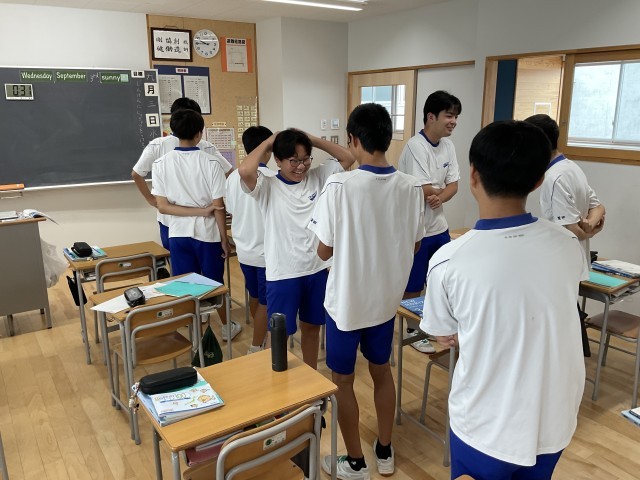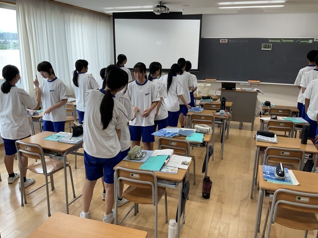 英語の授業では、ウォーミングアップとして「英単語 無音伝言ゲーム」をしました。