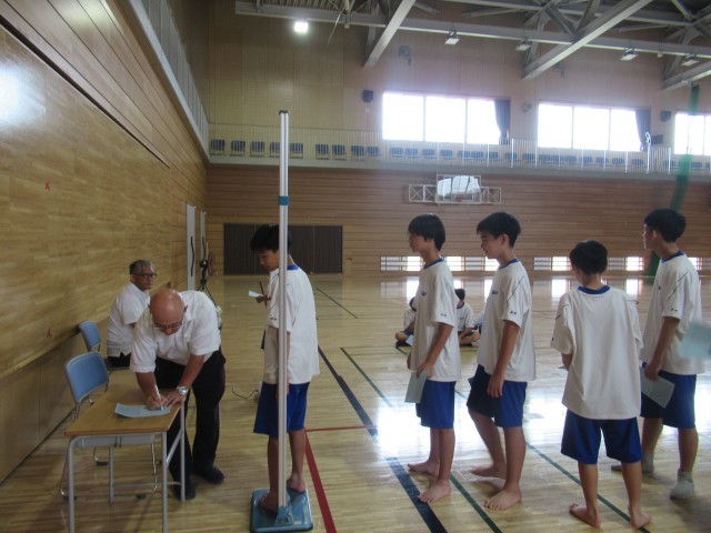 各教室で視力、体育館や集会室で身長・体重を計測しました。