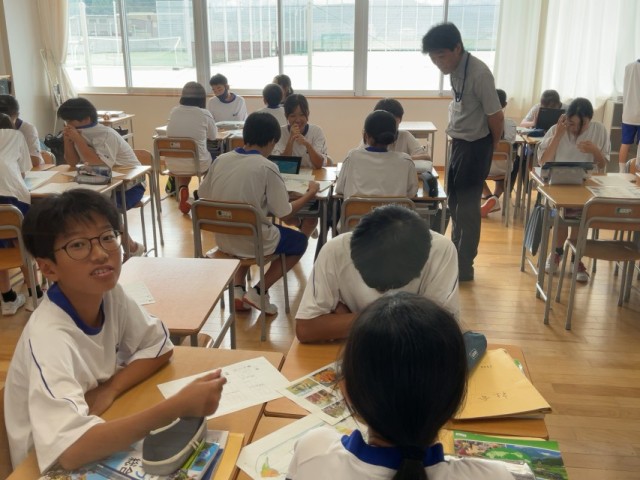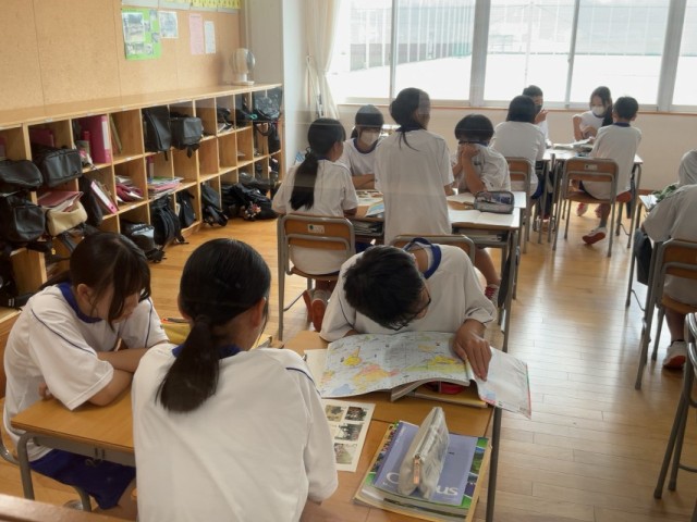 社会の授業の様子です。世界の人々の衣食住について考えています。