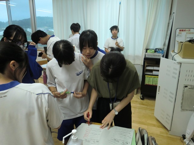 休み時間に入っても、教科の先生にプリントの丸付けをしてもらったり、キリのよいところまで粘り強く取り組んだりするなど、生徒の積極的な姿が見られます。