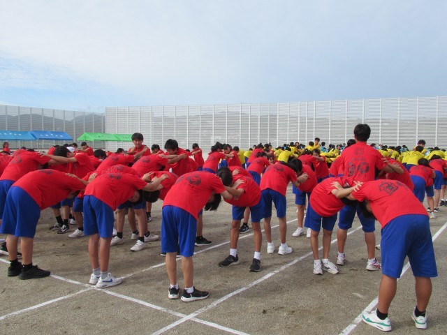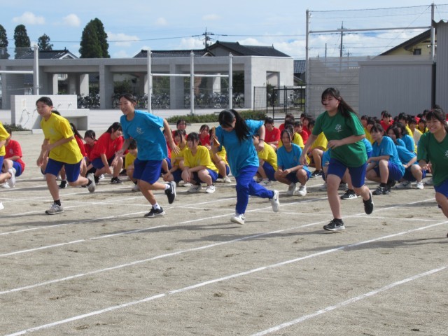 9月19日(金)体育大会の練習 公開日 2025/09/19 更新日 2025/09/19 八尾中学校のページ 先日の雨とはうって変わって、秋晴れの空のもと、体育大会の練習をしました。開会式・閉会式、競技練習から始まりました。その後、団活動では団リーダーの的確な声かけに団員が協力して活動していました。 +1