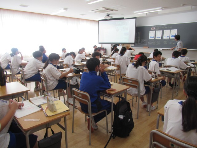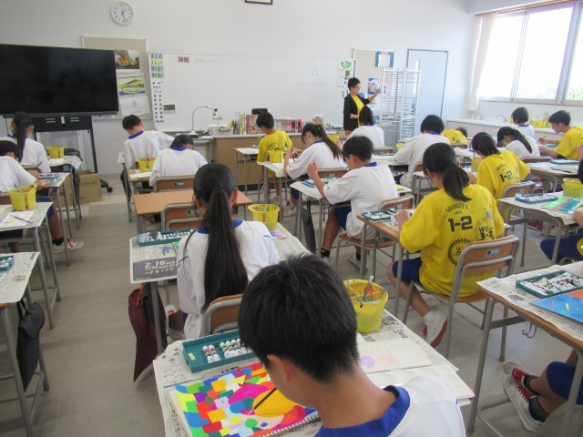 1組は、「温暖な地域の暮らし」~スペインの人々の生活を考えよう~。 2組は、「曲を聴いて、抽象画を描こう」。3組は、分数を含む方程式