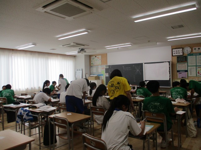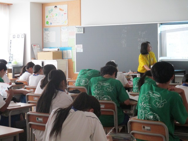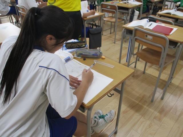 2次関数の問題に取り組んでいます。わからない問題を互いに教え合いながら、解いています。