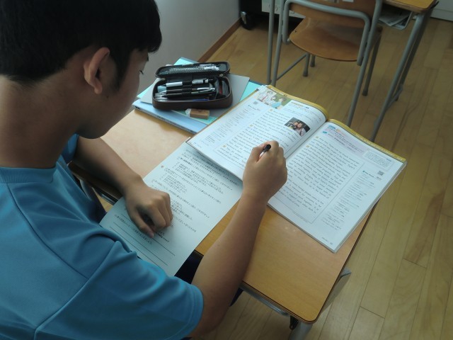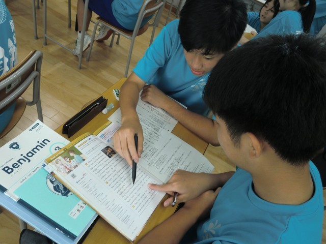 体育大会の練習が午前中にあり、疲れていた生徒たちでしたが、授業では集中モードに切り替えて、真剣に学習に取り組んでいました。英語の授業では、個人で問題を解いたり、友達と教えあったりしながら、自分のペースで学習を進めました。また、廊下で会ったALTに積極的に話しかけに行くなど、主体的な姿が見られました。