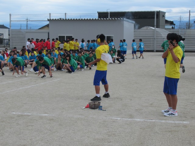 100Mの短距離走が終わった時点で雨が降ってきて、残る競技は中止。この後は、校舎内での団の活動になりました。