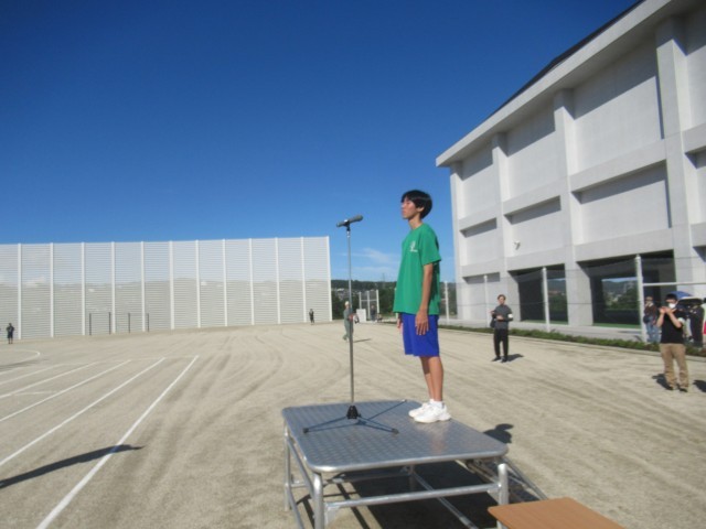生徒代表は「練習の成果を出し切り、団演技では、チームワークを見せましょう」とあいさつしました。