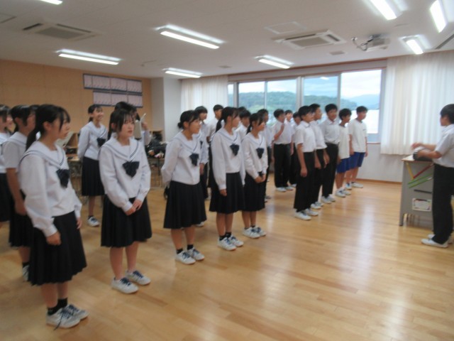 10月9日(木) 2年生 合唱練習2日目 公開日 2025/10/10 更新日 2025/10/09 2学年 2年生の合唱練習の様子です。終了時刻間際となり、時間ギリギリまで合唱を合わせているクラスや今日の活動の振り返りをしているクラスがありました。並び方を工夫して、パート練習や全体練習をしている姿が見られました。 +1