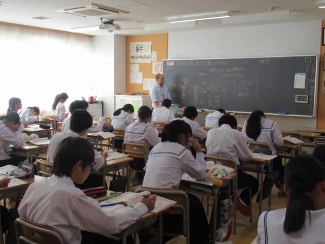 1学年 授業風景 公開日 2025/10/15 更新日 2025/10/15 1学年 2組は数学のまとめのプリントに、3組は理科の『溶解度曲線を使った計算』に、中間考査前の授業とあって真剣に取り組んでいました。1組は、美術で『文字を使ったデザイン』の、4組は、清々しい天候の下、ソフトボールゲームの授業でした。 +1