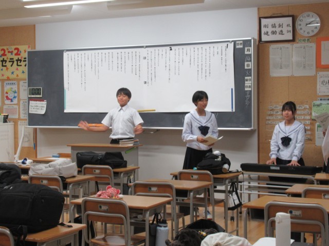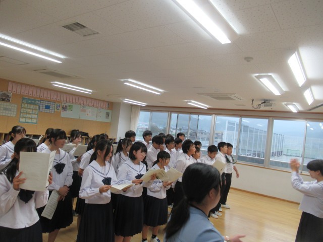 各教室では、各パートで発音の仕方を丁寧に練習したり、拡大した歌詞を黒板に貼り、目線を上げて歌ったりと、各クラスの工夫がたくさん見られました。