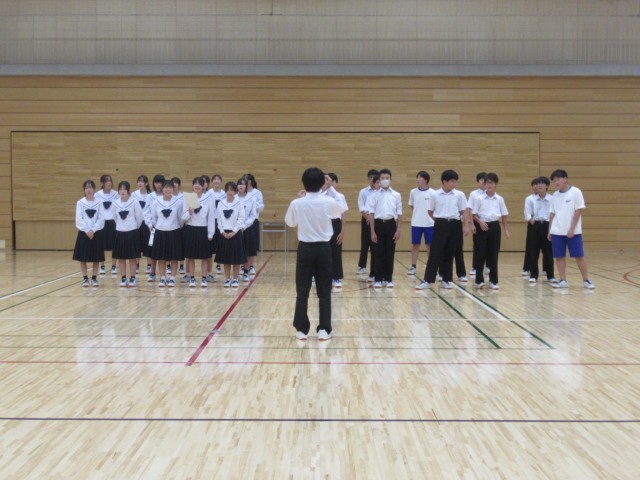 広い体育館ではなかなか声が響かず、悪戦苦闘していました。