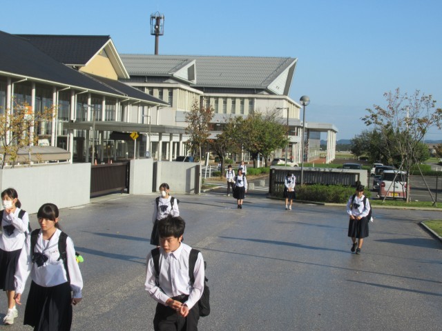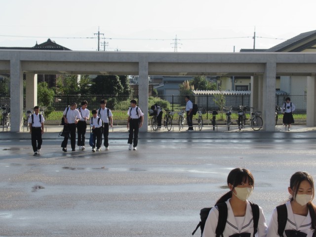 昨日の雨が嘘のように晴れ上がった朝、今日一日が素晴らしい日になる予感がしました。八尾中学生! がんばれ!