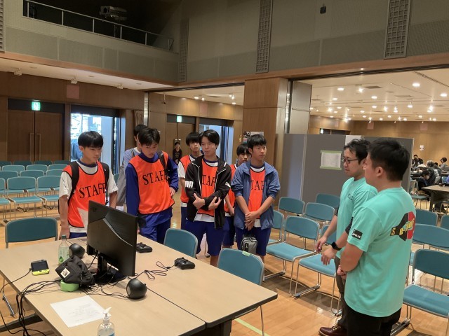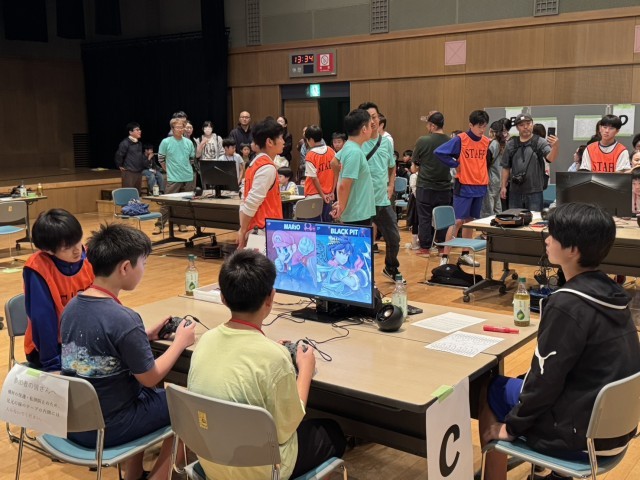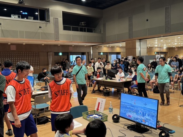 八尾コミュニティセンターで開催されているeスポーツのイベント「ワイワイチャンピオンズリーグ」に7名の生徒が運営ボランティアとして参加しています。参加している小学生の子供たちが競技しやすいように補助しています。