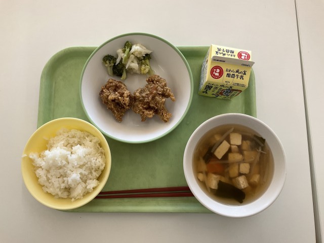 今日の献立に「ごま」が使われています。ごまの原産地はインドやエジプトと言われています。日本へは奈良時代に伝えられ、お寺の精進料理に使われました。ごまは、骨をつくるマグネシウムとカルシウムを多く含んでいます。大さじ2杯のごまで、牛乳コップ1杯以上のカルシウムがとれます。今日は、ごまの入った衣を鶏肉につけて油で揚げてあります。ごまの風味を楽しみながら味わっていただきましょう。