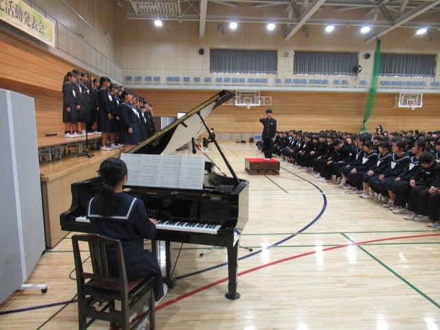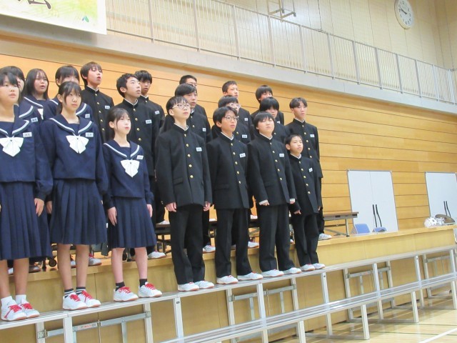 よいところや改善点など意見を出し合い、よりよい合唱にしてきました。歌い始めで大きく印象が変わるので、息を揃えて大きく声を出そうと頑張ってきました。3組にふさわしい、ニコニコの笑顔で歌いました。