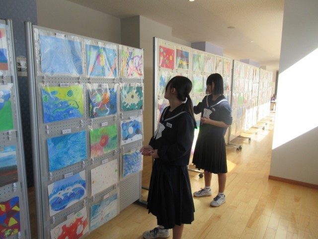 10月28日(火) 文化活動発表会 2年生作品鑑賞の様子 公開日 2025/10/29 更新日 2025/10/28 八尾中学校のページ 2年生も作品鑑賞をしました!美術、家庭科、国語など様々な教科の作品に触れて、感想を言いあっていました。感想のプリントにも選んだ作品の良いところをたくさん書いていました。 +2