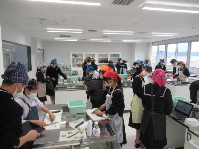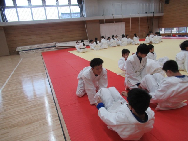今日の授業の様子 公開日 2025/10/31 更新日 2025/10/31 1学年 家庭科の調理実習は、包丁を使ったいろいろな切り方(輪切り・千切り・乱切り等)をキュウリで実践していました。保健体育科では、柔道の学習の目的を聞いてから挨拶仕方や姿勢の指導を受け、腹筋などの基礎練習の大切さを実践で学んでいました。 +2