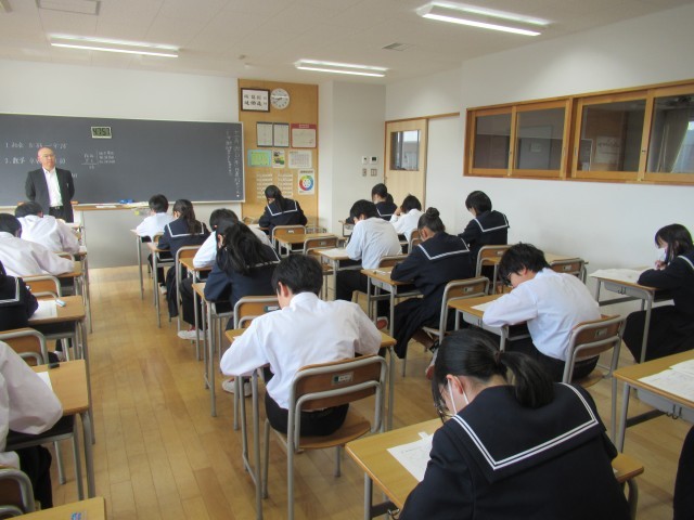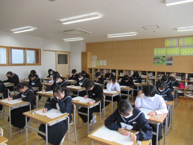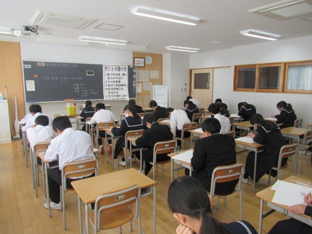 中教研学力調査二日目、社会と数学でした。2限目の終了のチャイムが鳴るとほっとした表情の生徒が多くいました。
