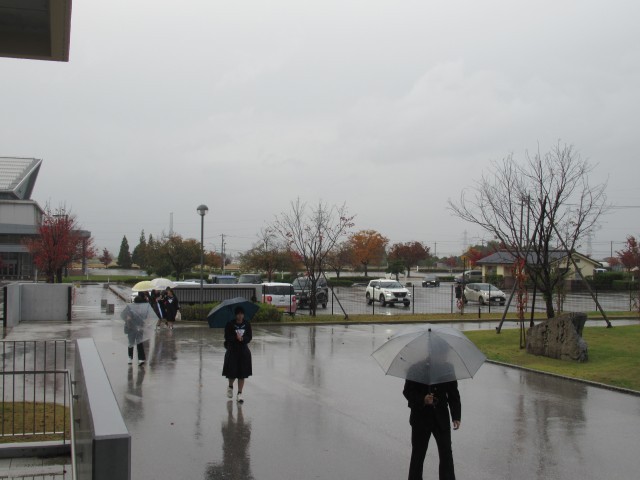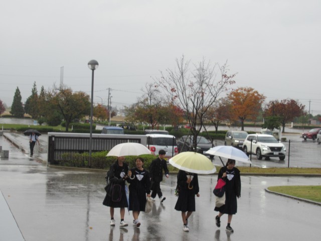 冷たい雨の中、熊出没に伴う保護者の送迎の車の多い朝でした。