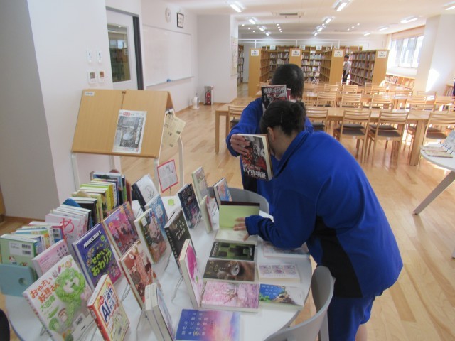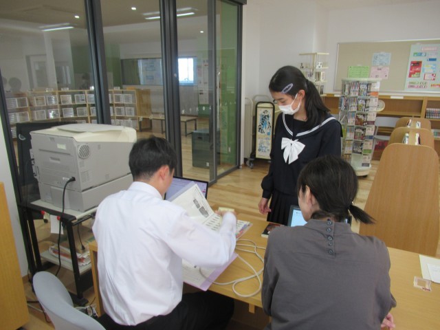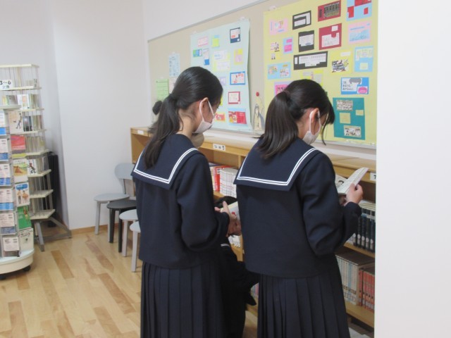 昼休み時間には1年生が何人も訪れ、本を借りる人や探す人がいました。司書の先生によるとこの光景は普通だそうです。