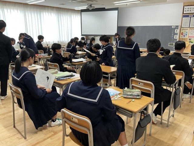 3年生の授業の様子です。今日はアルバム写真の撮影がありました。3年間の成長と共に素敵な笑顔で個人写真を撮っていただきました。中学校生活も残り4ヶ月。毎日の学びを大切にしながら生活していきましょう。卒業アルバムの完成が楽しみです!