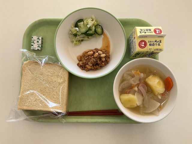 チ-ズは、体をつくる大切な栄養素がたくさん入っています。丈夫な骨や歯をつくるカルシウム、筋肉や血液、髪の毛など体をつくるタンパク質、食べたものをエネルギーに変えるビタミンB2など、どれも成長期の皆さんに必要な栄養です。おいしくいただきましょう。