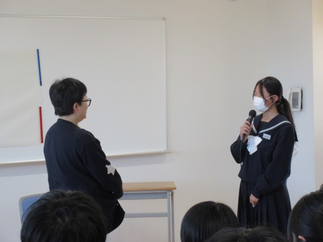 今日の4時間目に、来週から産休に入られる先生のありがとう集会を行いました。生徒が入学した時、先生も1年目の新米先生でした。生徒とともに成長をしてきた先生。みんなにお礼の言葉を述べられ、学年からお手紙をプレゼントしました。