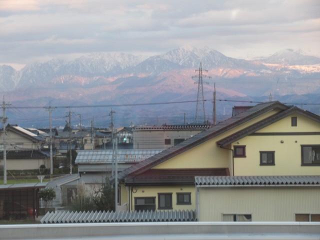 生徒が帰ってからの16時過ぎの夕日が当たっている立山連峰の様子です。明日は雨なのでしょうか?