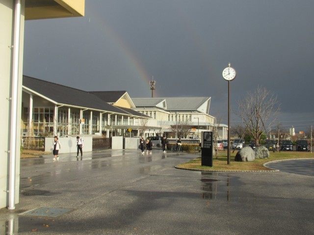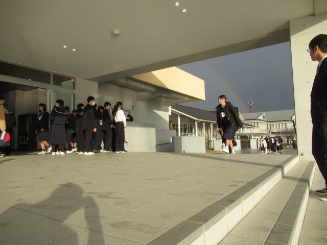 今朝も多くの生徒が活動に参加しました。ちょうど虹がでていました。今日一日よいことがありますように。