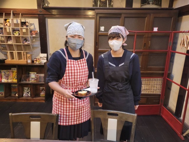 本日、地域協働サークルによる「カフェ」が『OYATSU』さんで開店しています。本校のサークルメンバーが作ったわらび餅ドリンクや桑の葉パウンドケーキを楽しむことができ、メンバーがスタッフとして活躍しています。ホッと一息、八尾でいかがですか?
