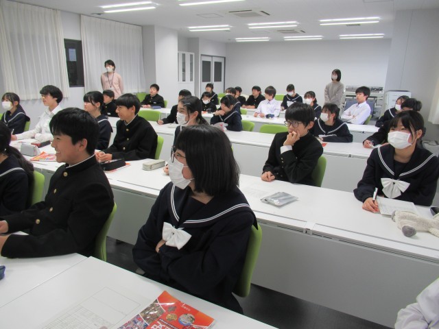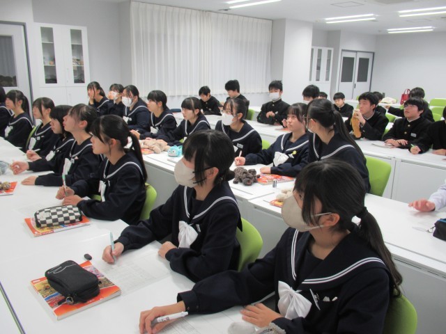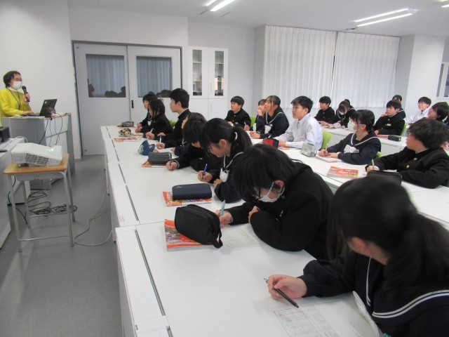 昨日に引き続き講師をお招きし、今日は1年生がクラス毎に「薬に関する講座」を受けました。