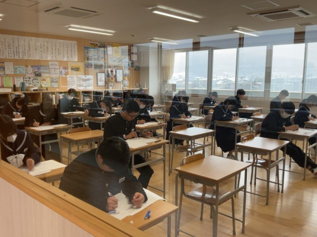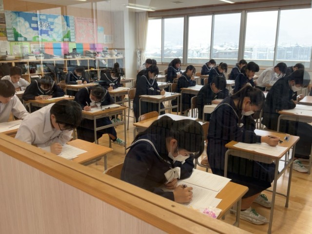 2限目、数学の様子です。静かな3階フロアで、生徒の鉛筆を走らせる音が響いています。