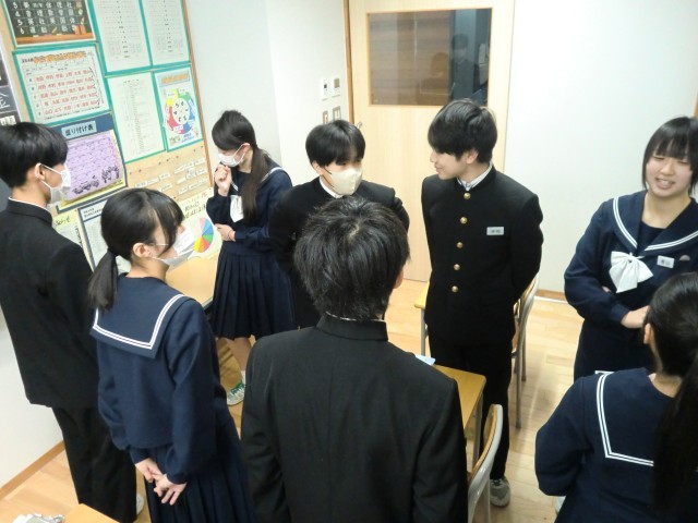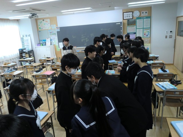 英語の授業では、Small Talkを行いました。今日のテーマは、"What do you want for Christmas?"でした。クリスマスプレセントに何が欲しいか、生徒たちは英語でやり取りをしました。"I want money."が多かったです。