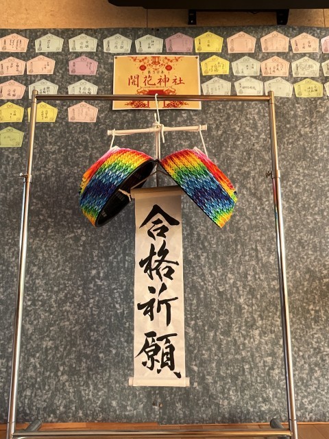 今週から学年生徒会企画として、開花神社が開かれました。周りには生徒が書いた絵馬が飾られています。一人一人の進路が確実なものとなりますように。