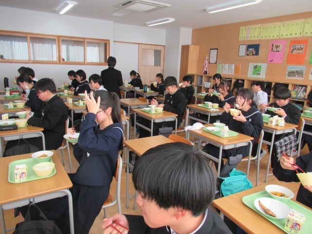 12月22日が冬至ということで、今日の給食のほうとうには、かぼちゃが入っていました。栄養価もそうですが、昔から【ん】のつくものを食べる習慣があって、なんきん(かぼちゃの別名)やれんこん、ぎんなん、にんじん等が運(うん)を引き寄せるということだったようです。【いろは歌】の最後の文字ということもあって、陰を陽に転じるという意味でもあったようですね。日本の昔からの習慣を感じる給食でした。
