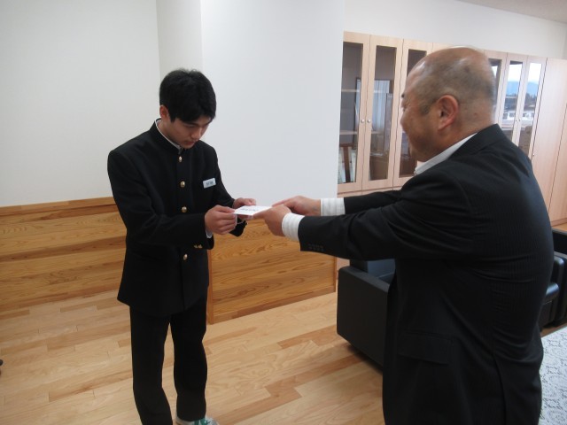 23日(火)校長室でバスケットボールの全国大会に向けた激励会がありました。