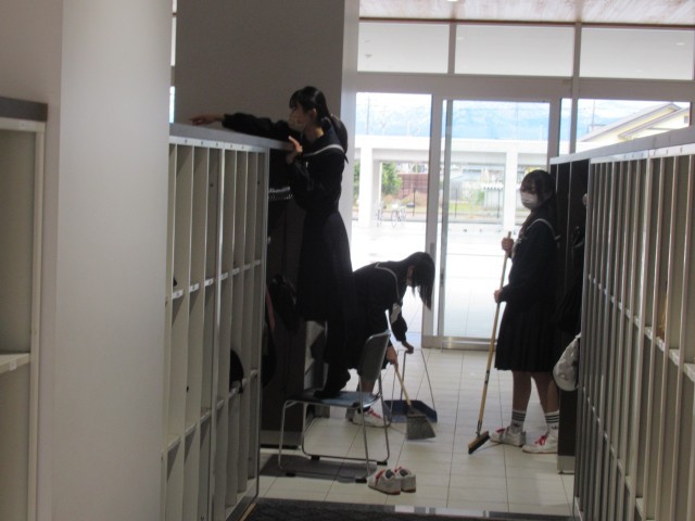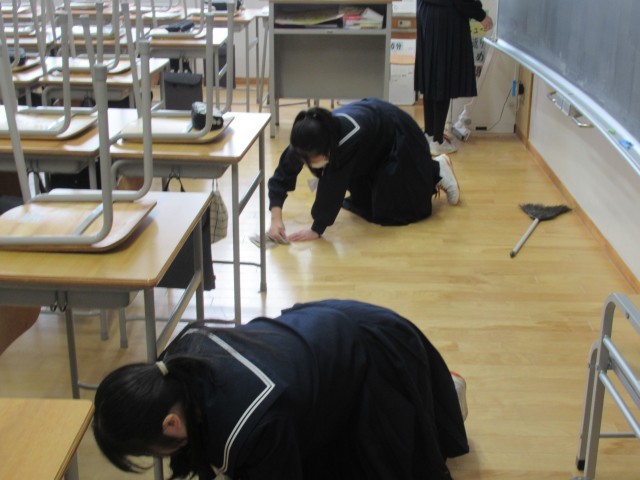 1年間、過ごさせてくれた校舎に感謝の気持ちを込めて、いつも以上に念入りに、いつもは手の届かないところをきれいにしていました。