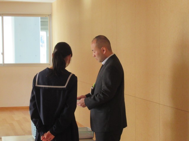 学級担任の先生から通知表を受け取る様子です。どうでしたか? 数字だけにこだわることなく、自分自身をしっかり振り返る材料としてください。そしてよかったことはまた伸ばし、不十分だったことは是非頑張って、3学期には満足できるよう、日々努力を続けてください。
