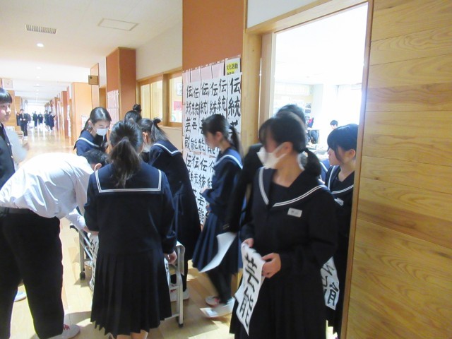 書き上げた作品を廊下に貼りました。満足のいく作品になりましたか。