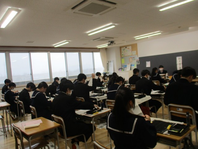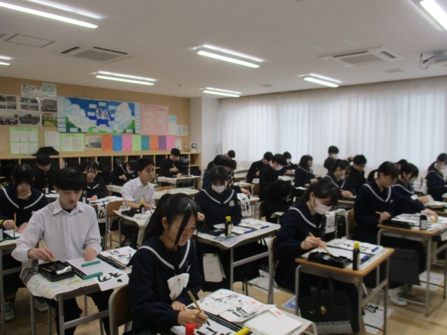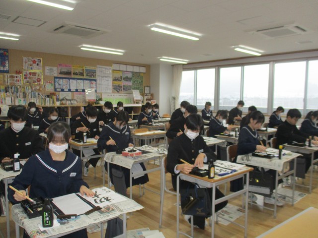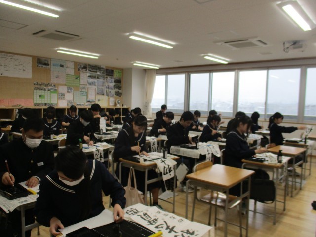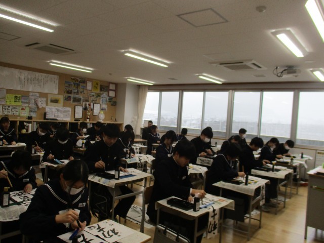 新年の学び初めに、生徒たちは迫る受験や各々のその先を見据え、集中してしたためています。