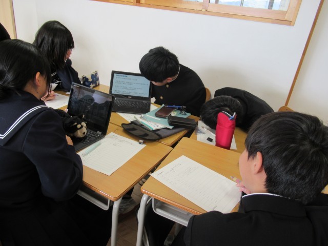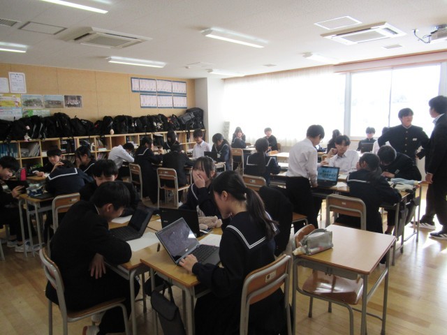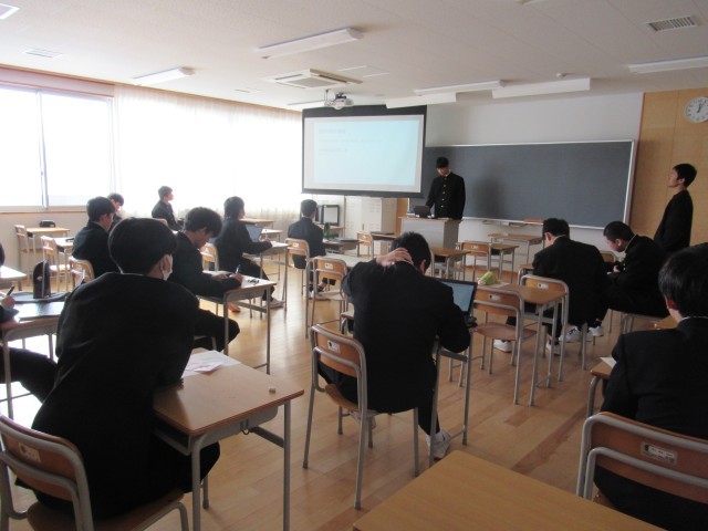 4・5限は総合で、冬休みの課題であった上級学校調べの発表会を行いました。